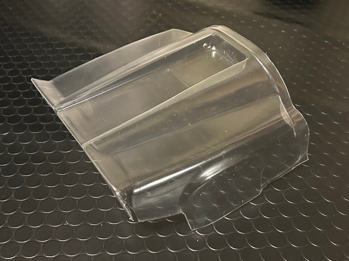 Elephant Models製 1/10 クリアボディです。ボディは4ピース構成(前後カウル、左右アンダーカウル )。別体ヘッドライトレンズ付き。