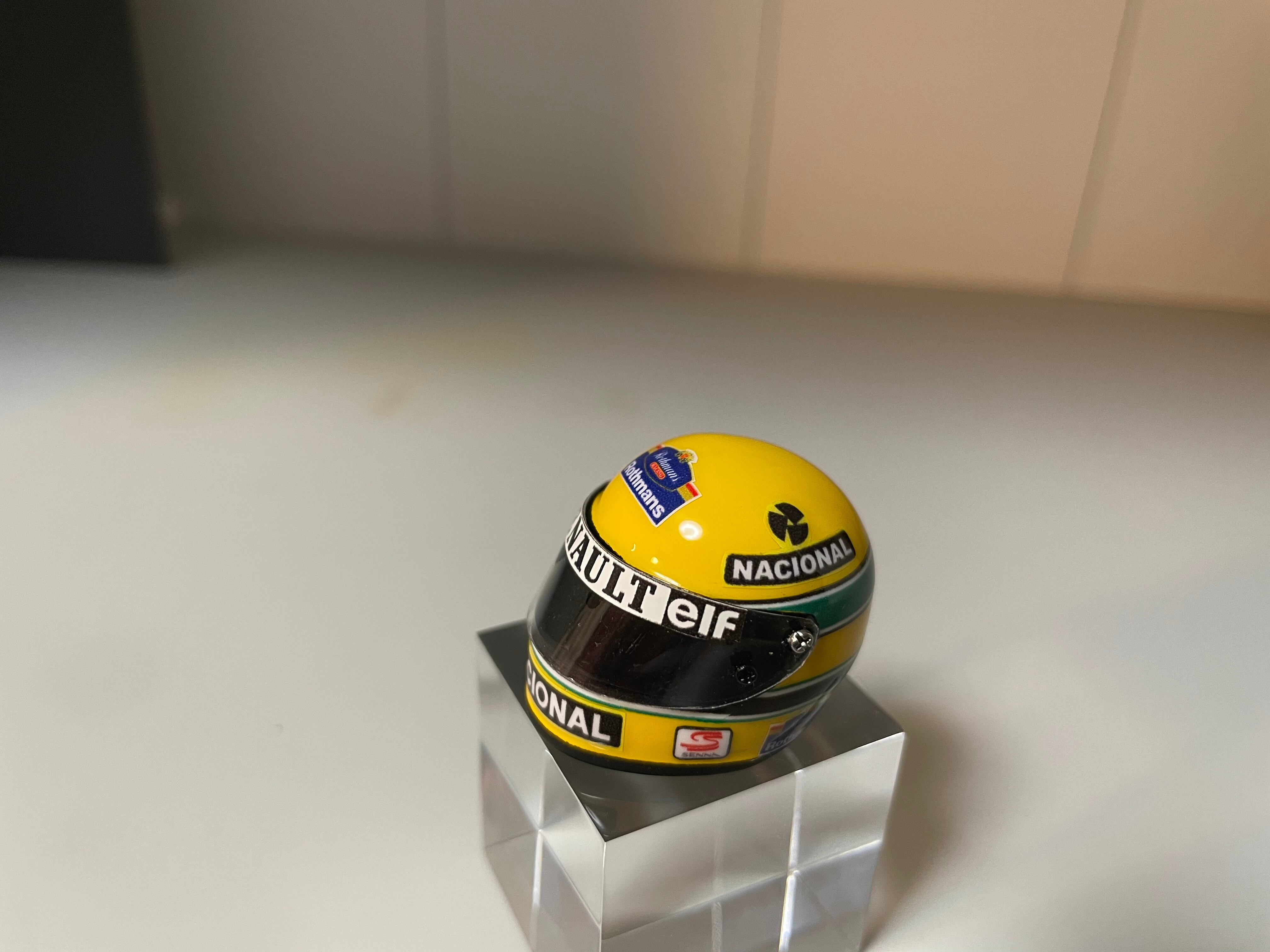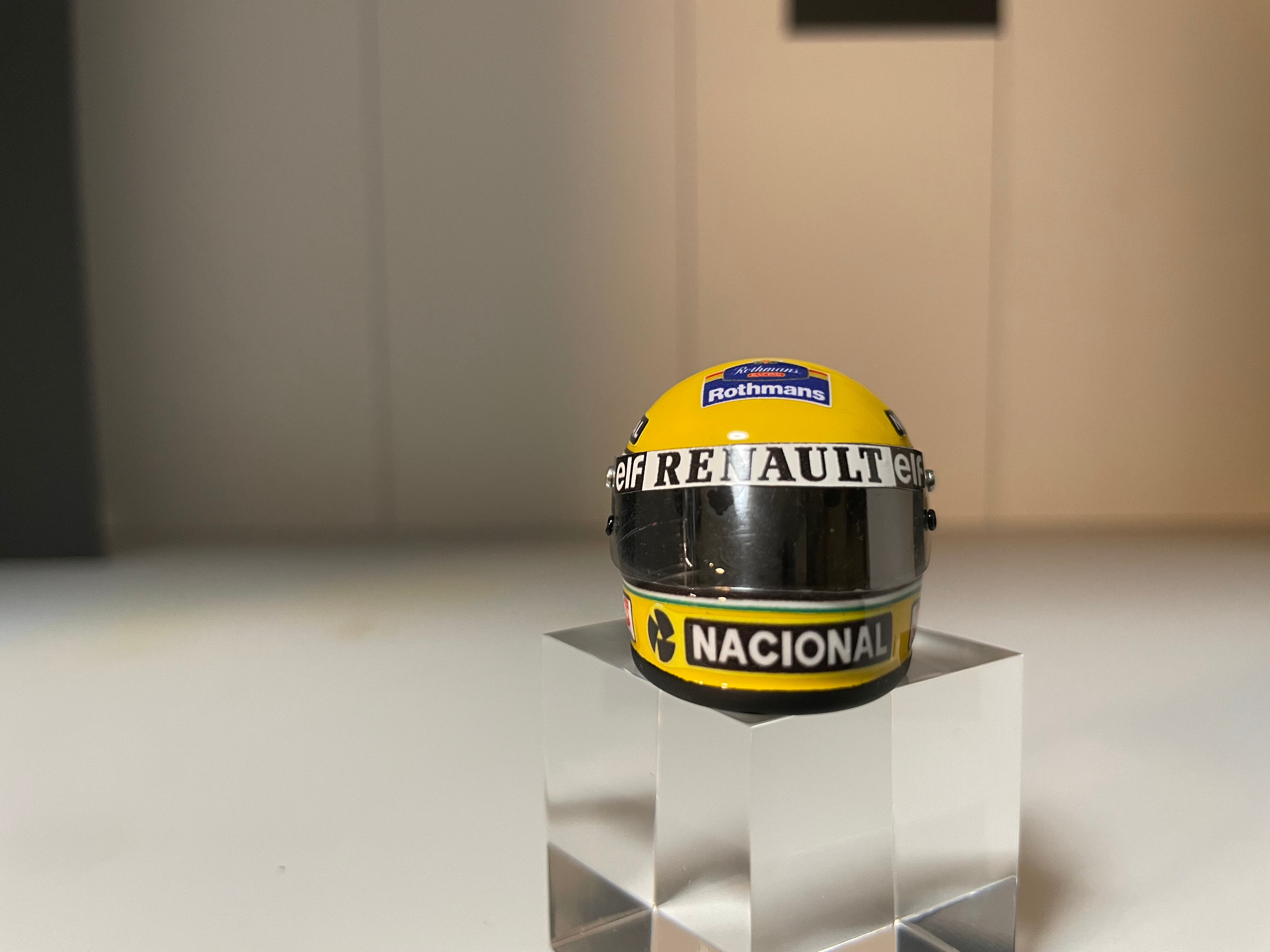 Using a commercially available plastic helmet as a base, we filled in the partition lines and screw holes with putty, and used two-component urethane clear to create a beautiful glossy finish.